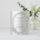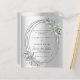 Um fundo com aparência de prata falsa decorado com verde sábio. Um falso quadro prateado. Personalize e adicione seus nomes e detalhes. 1 folha = 1 convite impresso de borda a borda.