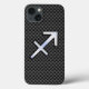 Um cromo prateado como Sagittarius zodiac num fundo impressão de fibra de carbono preta. Um design moderno urbano para uma ideia personalizada de presente de aniversário de excelente. Use o link "Perguntar a este Designer" para entrar em contato conosco com suas solicitações especiais de design ou para obter assistência com suas necessidades de personalização.