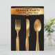 Silverware Dourado - Modelo de Convite de festas Janto formal. Convidado Dourado para o janto do Silverware. Personalize a fonte, o estilo, as cores e as imagens dos utensílios de comida do ouro são redimensionáveis. Personalize o seu convite de janto. Nota: não será utilizado nenhum metal dourado real na design.