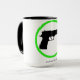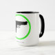 a caneca de café de 15 onças com o yes atira no sinal, o oposto de nenhumas armas assina. A imagem mostra um Beretta com um círculo verde.