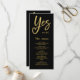 Sim Nós fazemos cardápio e programa de casamento Dourado a preto Este elegante design de casamento preto e dourado mostra a frase "Sim nós!" com a palavra "Sim" escrita num romeno dourado — o Y arrebatador incorpora inteligentemente uma forma cardíaca, simbolizando amor e unidade. O layout mínimo de chic combina a ousada tipografia moderna com sotaques de ouro eterno, criando um aspecto luxuoso perfeito para eventos formais, celebrações de gravatas negras ou casamentos noturnos. Os nomes são exibidos em caligrafia graciosa, adicionando um toque de encanto pessoal a este material sofisticado de papelaria. Esta design faz parte de uma coleção de casamento personalizável e foi cuidadosamente criada com a ajuda da IA para apoiar a criatividade. Eu posso ganhar uma pequena comissão através de compras feitas através de links de referência de mídias sociais.