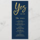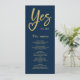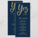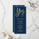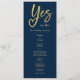 Sim, fazemos marinho cardápio de casamento Dourado e azul e programamos tudo em um cartão Este elegante design de casamento azul e dourado apresenta a frase "Sim nós fazemos!" com a palavra "Sim" escrita em um roteiro romântico de ouro — o Y brilhante incorpora inteligentemente uma forma cardíaca, simbolizando amor e unidade. O layout mínimo de chic combina a ousada tipografia moderna com sotaques de ouro eterno, criando um aspecto luxuoso perfeito para eventos formais, celebrações de gravatas azuis marinhos ou casamentos noturnos. Os nomes são exibidos em caligrafia graciosa, adicionando um toque de encanto pessoal a este material sofisticado de papelaria. Esta design faz parte de uma coleção de casamento personalizável e foi cuidadosamente criada com a ajuda da IA para apoiar a criatividade. Eu posso ganhar uma pequena comissão através de compras feitas através de links de referência de mídias sociais.