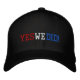 Celebrar a vitória histórica do presidente eleito Barack Obama com este boné bordado que diz: "Sim, nós fizemos" em fios vermelhos, brancos e azuis.