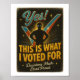 Faça uma declaração ousada com este trabalho de arte retrorinspirado com a frase: "SIM! É POR ISSO QUE VOTEI." Projetada em um layout cômico com energia do poster vintage, esta peça é perfeita para mostrar seu orgulho cívico. Quer você esteja decorando seu espaço ou imprimindo seu próprio espaço, este trabalho de arte oferece um poderoso soco visual. Disponível como: 📥 Download Digital (PNG + PDF de alto res) 🖼️ Excelente Poster (escolha o seu tamanho e papel) para: Eventos políticos Expressão pessoal Gabinete, dormitório ou paredes de sala de estar Presentes moldados para amigos que pensam da mesma forma Inclui: Versão transparente de fundo (PNG) Formatos imprimíveis para uso doméstico ou profissional poster Pronta para enquadramento via Zazzle Sem marcas d'água nos arquivos finais
