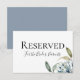 Flor de cor azul-d'água empoeirada com ramos botânicos, sinal de cartão plano "RESERVADO". Personalizar estilo, cor e tamanho da fonte. Concebido para corresponder à nossa Coleção Botânica Azul Dusty.