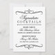 O símbolo de assinatura de casamento elegante apresenta receitas de bebida personalizadas para a noiva e noiva enquadradas por elementos de design de rolagem decorativa. Esquema clássico de cores preto e branco. Pronto para personalizar o seu evento.