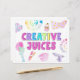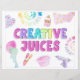 8x10" - Sinal "Creative Juices". Será impresso e enviado a você em papel de estoque de cartão branco pesado 8,5x11". Você precisará rodar o contorno preto para obter o sinal no tamanho de 8 x 10". A partir daí você pode enquadrar o sinal ou a exibição, como quiser.