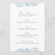 Este moderno cartaz de casamento do cardápio do bar apresenta folhas de eucalipto azuis empoeiradas e uma letra romântica. Veja outros itens na coleção "Blue Eucalyptus".