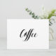 Simples e elegante sinal de casamento do estilo caligrafia preto e branco "Café". Este cartaz de casamento "Café" parece excelente impresso em um papel mate, se você precisar de algo mais tradicional, use o Laid, Linen ou Columned, para uma sensação rústica usar o Artisan Kraft, se você quiser adicionar um toque de vidro, use o Luxe. Clicando no botão "personalizar", você pode acessar a ferramenta do editor e escolher uma cor de fundo diferente. Este é um sinal de cartão impresso plano de 5" x 7", que ficará muito elegante em uma imagem.