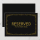 Simples e elegante estilo de deco de arte "Reservado para a família da noiva", personalizado com seu próprio texto, apresenta um quadro de deco de arte dourada sobre um fundo preto. Esta placa de casamento chic "reservada" parece excelente impressa em um papel mate, se você precisar de algo mais tradicional use o Laid, Linen ou Columned, se você quiser adicionar um toque de vidro, use o Luxe. Clicando no botão "personalizar", você pode acessar a ferramenta do editor e escolher uma cor de fundo diferente. Este é um sinal de cartão impresso plano de 5" x 7", que ficará muito elegante em uma imagem.