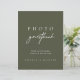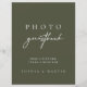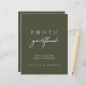 Uma placa de casamento minimalista projetada em verde-escuro com elegante tipografia moderna e um sotaque escrito à mão. Ideal para configurações de mesa do álbum de fotos — instrua os convidados a aprisionar uma foto e deixar uma mensagem para o casal. Totalmente editável e fácil de personalizar com nomes ou data de casamento. Pares lindamente com estilos de casamento modernos, rústicos e ao ar livre. Visualize o link de coleção nesta página para ver todos os itens correspondentes nesta bela design.