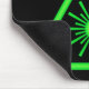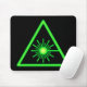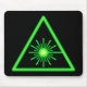 Mousepad preto com símbolo de aviso de laser verde brilhante.