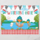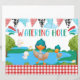 Sinal de Mesa para crianças festa de aniversário apresentando patos bonitos ao redor deste buraco de água