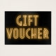 Um design de sinal de neon deco de arte amarelo brilhante em um fundo de textura de metal preto. Este certificado de presente ou vale-presente moderno e moderno proclama corajosamente "Gift Voucher" em letras de neon em amarelo brilhante e é perfeito para seus clientes leais e novos. Nota: o efeito néon sai melhor em papel impresso brilhante.