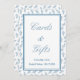 Guie os convidados com facilidade usando este elegante cartazes florais azuis e cartazes de casamento Gifts. Projetado para direcionar os convidados para a sua mesa de presentes designada, este sinal garante que eles saibam exatamente onde colocar seus cartões e presentes refletidos. Apresentando uma sofisticada fronteira botânica e tipografia clássica, ela se combina perfeitamente com eterno, vintage ou decoração moderna de casamento. Personalize com seus nomes e data de casamento para um toque personalizado.