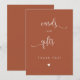 Que nossa coleção de terracotta minimalista queimada de laranja e cartões brancos e sinais de presentes traga um toque de elegância e sofisticação subestimadas para sua celebração. Fácil de personalizar e perfeito para qualquer casamento ou evento. Veja a Design de Arte Gráfica para outros produtos que combinam com este design!