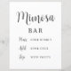 Eleve seu evento de chá de fraldas, chá de panela ou brunch com este sinal de Bar Mimosa, com um design moderno minimalista preto e branco. Impresso em um papel econômico, este cartaz de tipografia limpo adiciona um toque chic, subestimado, à sua estação de bebidas. Fácil de usar em qualquer tema de festa, de celebrações elegantes a casuais. Perfeito por criar um bar mimosa convidativo onde os convidados podem misturar-se, beber e celebrar! Descubra os itens de coordenação no armazenamento! c) Paperie fina somerset