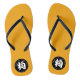 Ideograma branco personalizável de cachorro com círculo preto na chinela laranja de homem. Perfeito para o Ano Novo Chinês do Cão 2018 ou aniversário (pessoas nascidas no Ano do Cão).----- "O Cão (狗) é um dos animais do ciclo de 12 anos que aparecem no zodíaco chinês relacionado ao calendário chinês. O Ano do Cão é associado ao símbolo Ramo Terrestre 戌. O caractere 狗 refere-se ao animal real, enquanto 戌 se refere ao animal do zodíaco. (...) As pessoas nascidas dentro desses intervalos de datas podem ser consideradas como tendo nascido no "Ano do Cão", ao mesmo tempo em que possuem o seguinte signo elementar:
