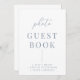 Um símbolo moderno e elegante de casamento para o seu livro de fotos apresenta um design azul e branco empoeirado minimalista com linhas modernas, uma letra elegante e letra de serifa elegante. Veja os itens correspondentes na coleção "Dusty Blue Modern Elegant".