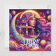 Ai arte representando uma linda mulher colorida cercada por escalas roxas, rosa e laranja, planetas, estrelas, luas e cores giratórias. Sinal de horóscopo da arte celestial de Libra Zodiac. Traços e datas de Libra.