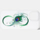 O símbolo do infinito com uma pena brilhante, verde, de pavão artístico sobre um fundo branco. Tatuagem.