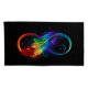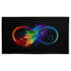 Símbolo infinito desenhado artificialmente com uma bela pena arco-íris sobre fundo branco. Tatuagem.