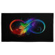 Símbolo infinito desenhado artificialmente com uma bela pena arco-íris sobre fundo branco. Tatuagem.