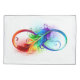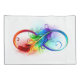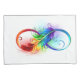 Símbolo infinito desenhado artificialmente com uma bela pena de arco-íris sobre fundo branco. Estilo de tatuagem.