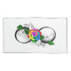 símbolo infinito com rosa arco-íris sobre fundo branco.