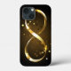 Símbolo infinito de joias Dourado com estrelas douradas sobre fundo preto. Design com estrela dourada.