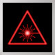 Poster preto com um símbolo vermelho brilhante de aviso laser de efeito 3D.