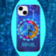 Um sinal de paz colorido, com cores brilhantes fluentes, incluindo azul-aqua, meia-noite, rosa, laranja e roxo. A magnífica explosão de cores pop contra um fundo azul Azure. O fundo brilhando tem uma aparência angustiante, com listras de luz brilhando. Adicione facilmente o seu nome ou iniciais a esta legal capa de telefone moderna.