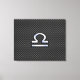 Um cromo como o Libra Zodiac Sinal em um fundo de impressão de design de textura de fibra de carbono. Um design moderno urbano para uma ideia personalizada de presente de aniversário de excelente. Use o link "Perguntar a este Designer" para entrar em contato conosco com suas solicitações especiais de design ou para obter assistência com seu projeto de personalização.