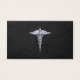 O design do Símbolo Médico Simbólico de Prata Caduceus apresentado aqui num fundo preto. Os cobras caduceus são feitos para parecerem feitos de cromo. Bom para a formatura, para a sua profissão, ou para um presente com aquele olhar médico que você está procurando.
