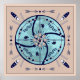 Um abstrato, design de mandala de quatro lados, em marinho azul, em terracota pálida. Esta design é composta por símbolos inspirados nos glifos e pinturas de areia nativos americanos. Todos os itens têm significado, tendo a ver com a cicatrização, longa vida, proteção, força, tempo e constância, terra, e sol. Tudo colocado sobre uma lua de cheio azul.