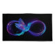 Símbolo luminoso, roxo e infinito com beija-flor azul voadora, luminosa, em fundo preto. Neon.