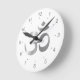 Este relógio simples e elegante apresenta um símbolo falso de folha prateada "Om" e números de cinzas correspondentes.