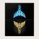 Símbolos caduceus poligonais dourados em fundo preto isolado. Símbolo de medicina low poly.