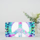 Sinal de paz com pontos e espirais em tons de neon quente de rosa, azul, verde e amarelo, de Justin Allen. Legal e bonita e colorida arte hippie trippy psicedelic vintage retro sessenta estilo inspiracional abstrato arte espiritual.