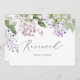 Este cartaz de lilás rústico é perfeito para um casamento de primavera ou verão. A placa tem dois lados (impressões em ambos os lados). A romântica e elegante design floral apresenta flores lilás roxas de aquarela com uma sensação de jardim boho country. Use estes cartões para reservar cadeiras ou mesas na cerimônia de casamento, recepção ou qualquer evento.