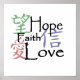 Símbolos chineses para esperança, amor e fé na poster