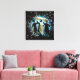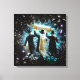 Simchat Torah é a celebração da conclusão do ciclo de leitura de Torah no final de Sukkot. A impressão de arte na galeria com qualidade de canvas esticada apresenta homens judeus dançando com o pergaminho de Torah e as letras hebraicas que soletram "Simchat Torah", significando "Joy of Torah".