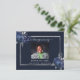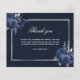 Um cartões de agradecimentos de simpatia simples e elegante com a foto. Um fundo azul marinho, um falso quadro prateado e florais azuis. Personalize e adicione sua nota de agradecimento.