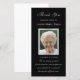 Este obrigado encantador que você tem para seu cartão de compaixão mostra a foto de seu ente querido cercado por um quadro de olhar prateado como ponto focal. As palavras "Obrigado da família de (seu amado)" aparecem em prata em um fundo preto bem acima de sua foto. Abaixo da foto, você pode personalizar as datas de nascimento e morte. Depois disso, encontrará um obrigado adorável para o seu verso de simpatia. Este cartão com fotos é a memória perfeita para aqueles que expressaram gentileza durante este período difícil. Compaixão por direitos autorais