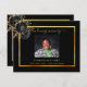 Um cartões de agradecimentos de simpatia simples e elegante com a foto. Um fundo preto clássico, uma falso armação de aspecto dourado e florais negros. Personalize e adicione sua nota de agradecimento.