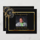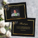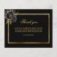 Um cartões de agradecimentos de simpatia simples e elegante com a foto. Um fundo preto clássico, uma falsa estrutura dourada e florais negros. Personalize e adicione sua nota de agradecimento.