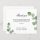 Um cartões de agradecimentos de simpatia simples e elegante. Um fundo branco, e ecalisptus verde-aquoso, prigos, folhagem. Personalize e adicione sua nota de agradecimento.