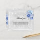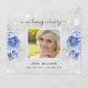 Um cartões de agradecimentos de simpatia simples e elegante com a foto. Um fundo metálico prateado falsa, uma estrutura branca, poeira brilhante falsa, rosas azuis, florais. Personalize e adicione sua nota de agradecimento. Texto preto.