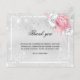 Um cartões de agradecimentos de simpatia simples e elegante com a foto. Um fundo metálico prateado falsa, uma estrutura branca, poeira brilhante falsa, rosas brancas e rosa, florais. Personalize e adicione sua nota de agradecimento. Texto preto.