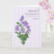 Um cartão de saudação muito bonito para expressar sua simpatia com alguém pela morte de sua irmã. A madeira ou os violetas selvagens têm muitas associações, mas William Shakespeare associou violetas inglesas à morte e ao luto, embora sejam muitas vezes o primeiro sinal de chegada de primavera à floresta, por isso transmitem uma mensagem de esperança e renovação. Este aglomerado de violetas foi pintado manualmente em aquarela por Judy Adamson e o fundo é riscado com uma cor violeta muito pálida. A saudação inicial do cobrir é, "Com a mais profunda simpatia pela perda da sua irmã" e a mensagem dentro é apenas uma sugestão que você pode facilmente personalizar.